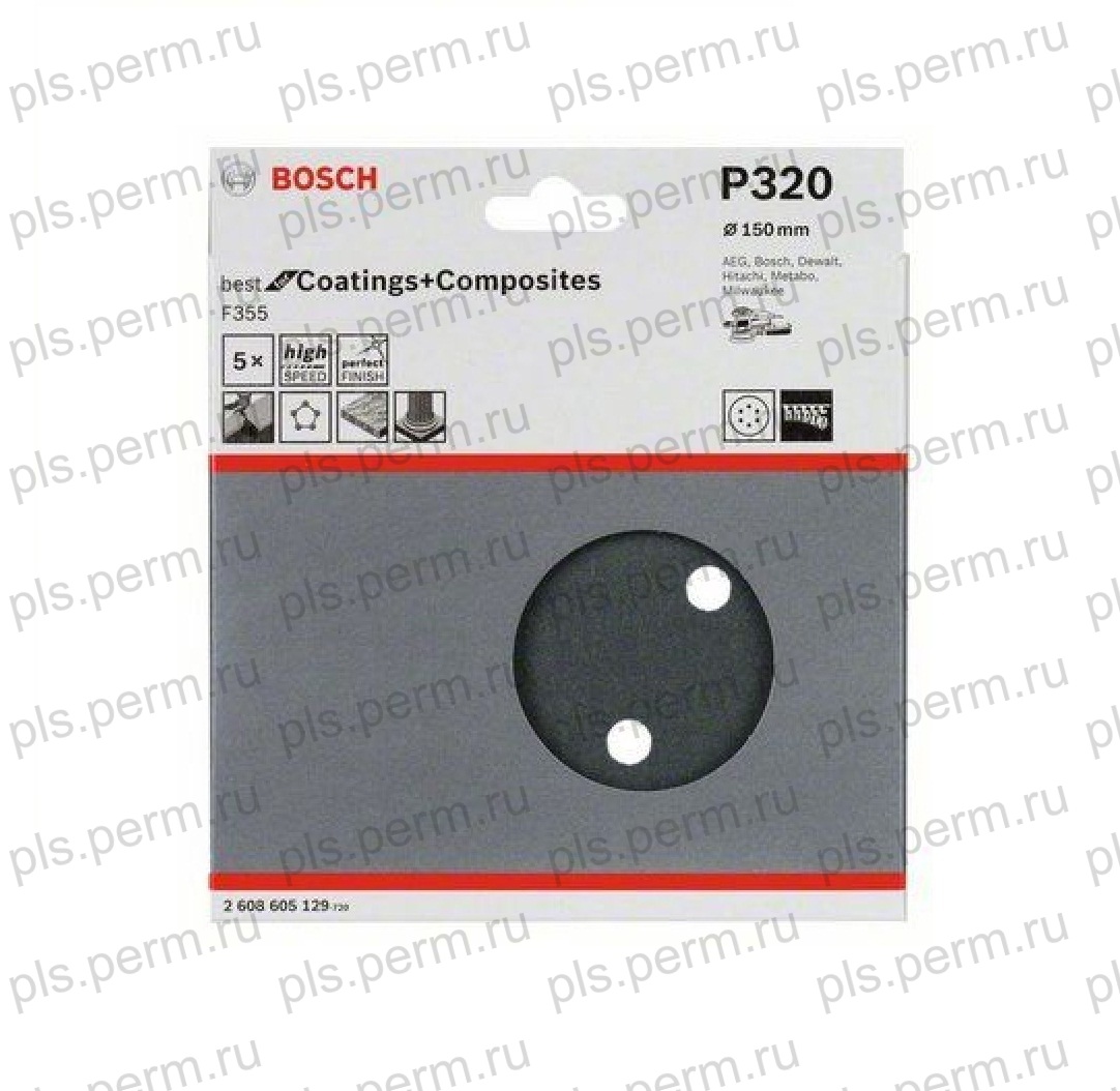 Шлифовальный лист для шлифтарелки 150*Р 320мм 5шт BOSCH 2608605129