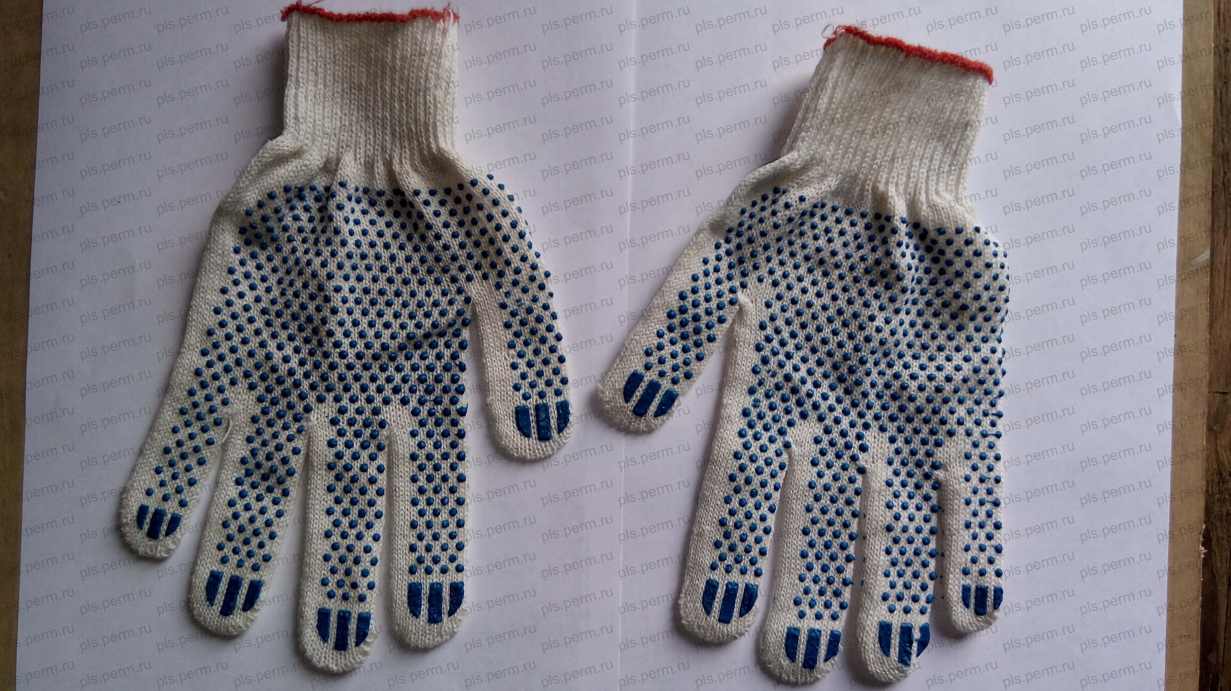 Перчатки вязаные х/б 5 нитей, 10кл., белые с ПВХ точка, уп.- 300шт 16 с ПВХ