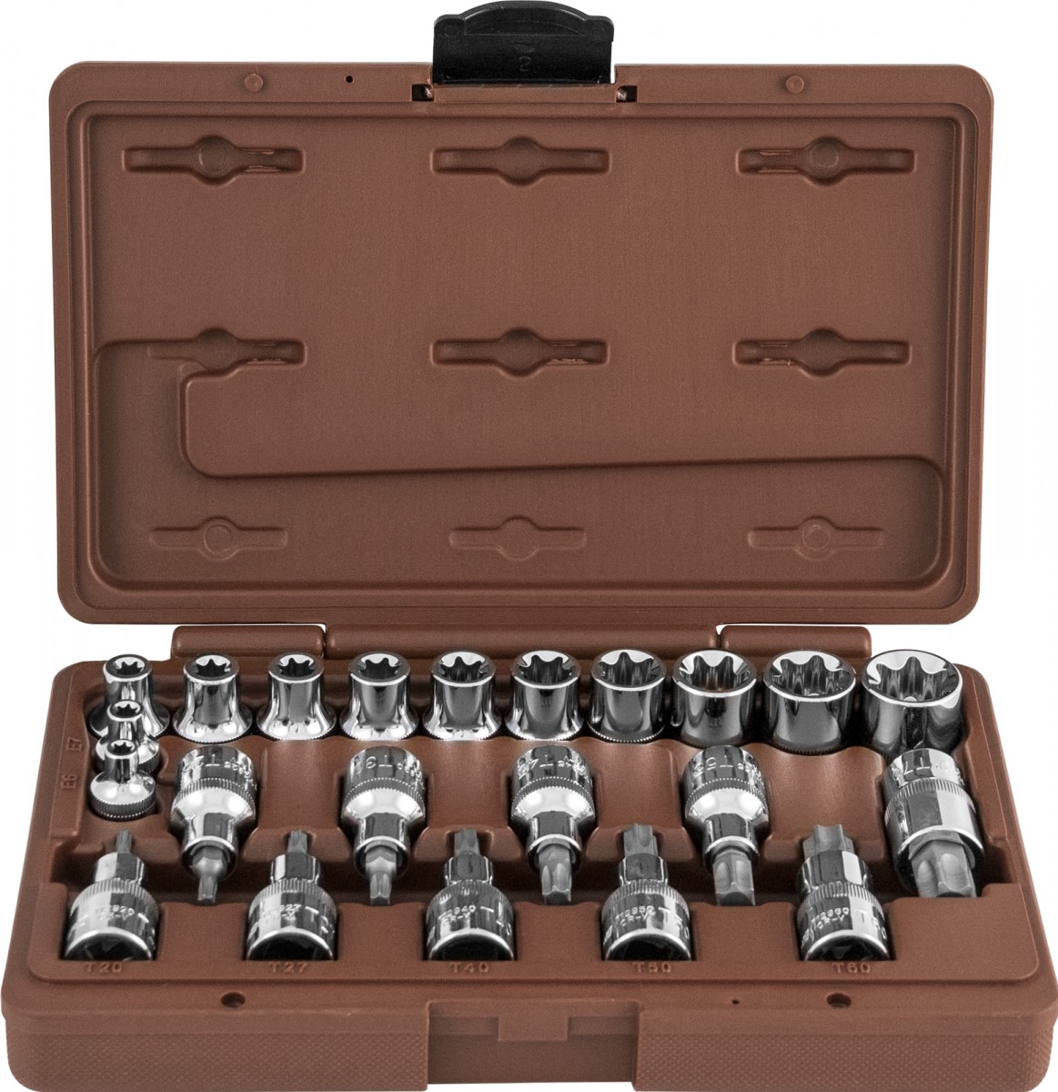 Набор Головок торцев.1/2",22 предм: TORX= T20- T70,кейс OMBRA 953222