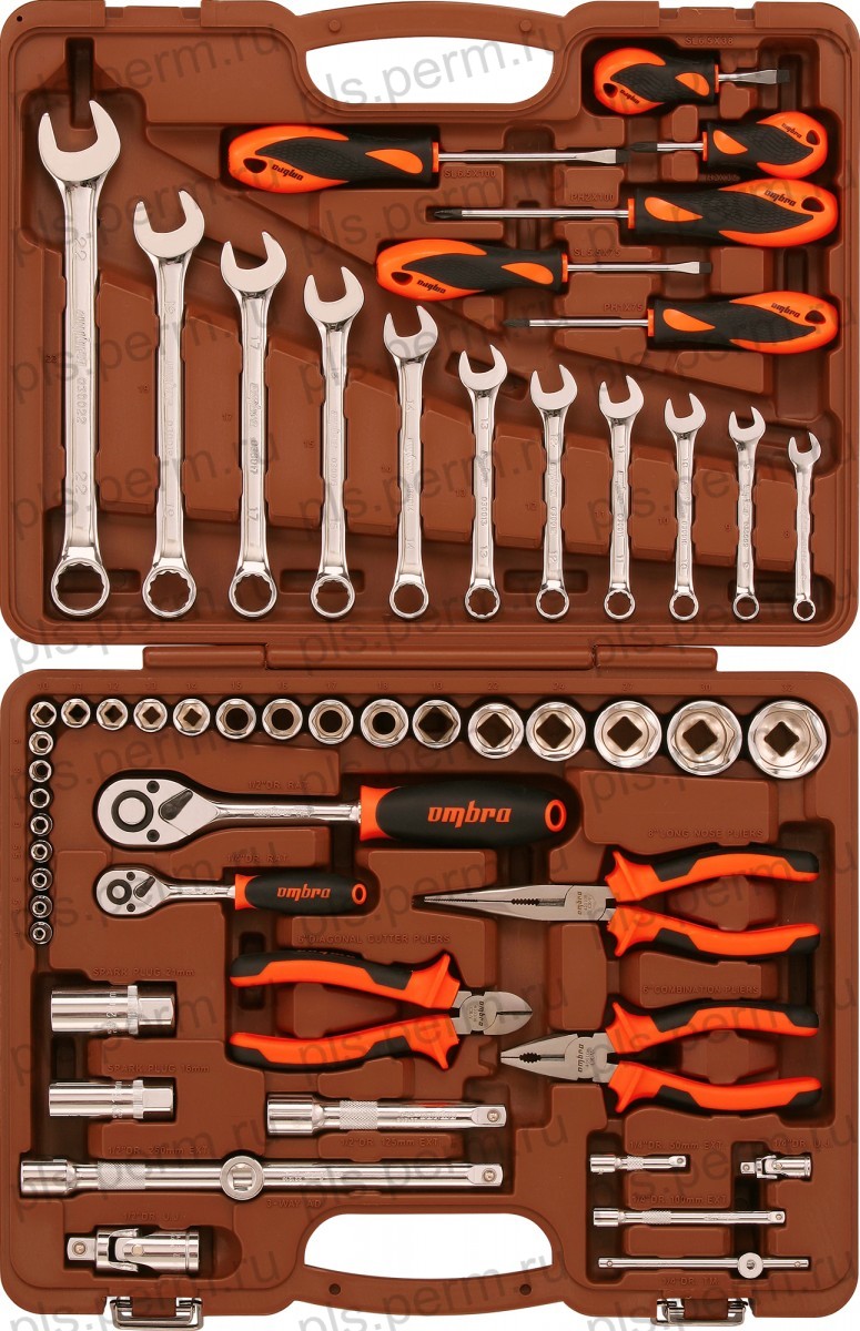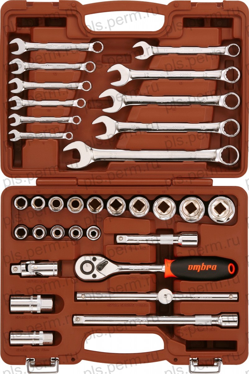 Набор инстр-нта 55S предм/.Кейс:1/4-1/2DR голов=4-32,17-23ммГоловДлин,Биты,Трещ,3шт OMBRA OMT55S