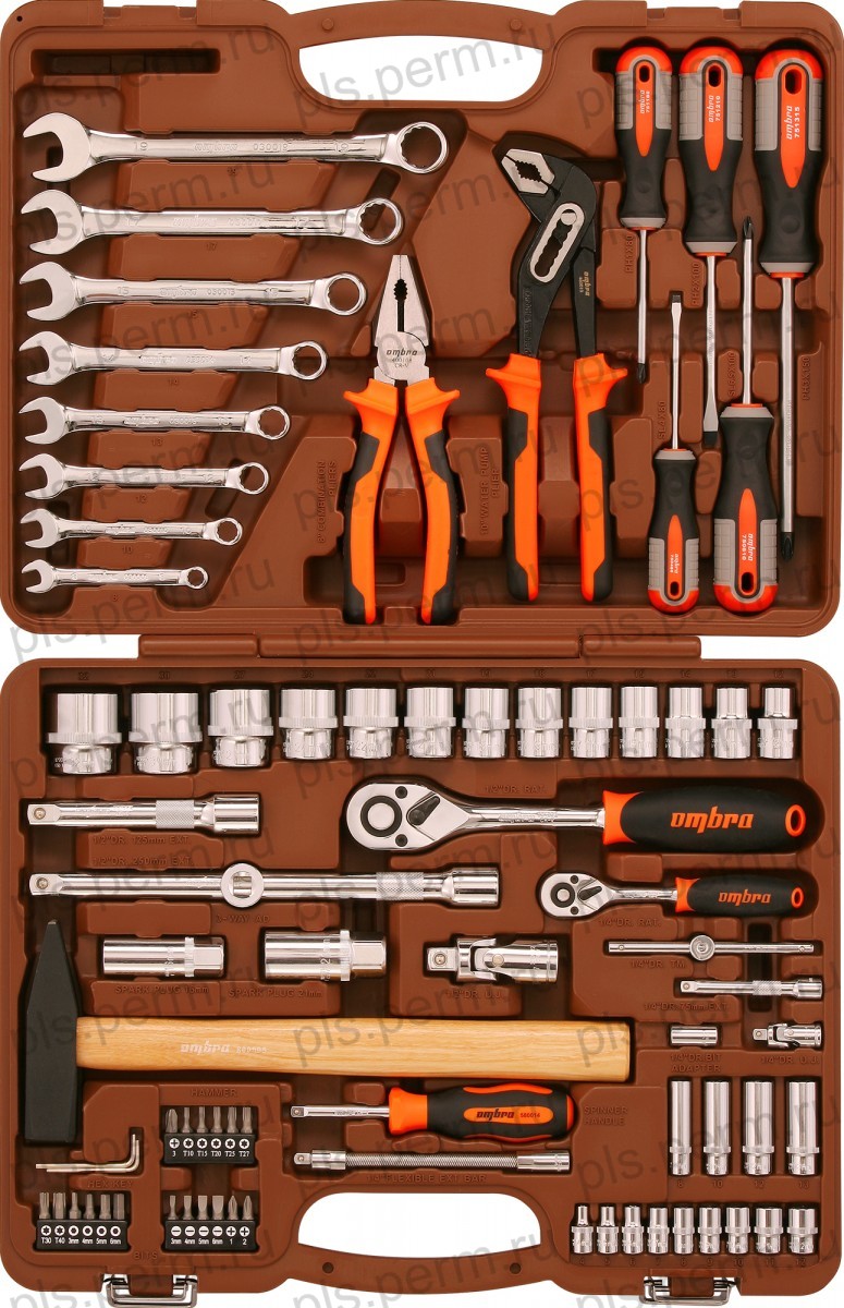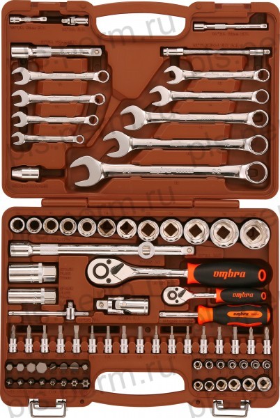 Набор инстр-нта 69S предм/.Кейс:1/4-1/2DR голов=4-32,17-23ммГоловДлин,Биты,Трещ,3шт OMBRA OMT69S